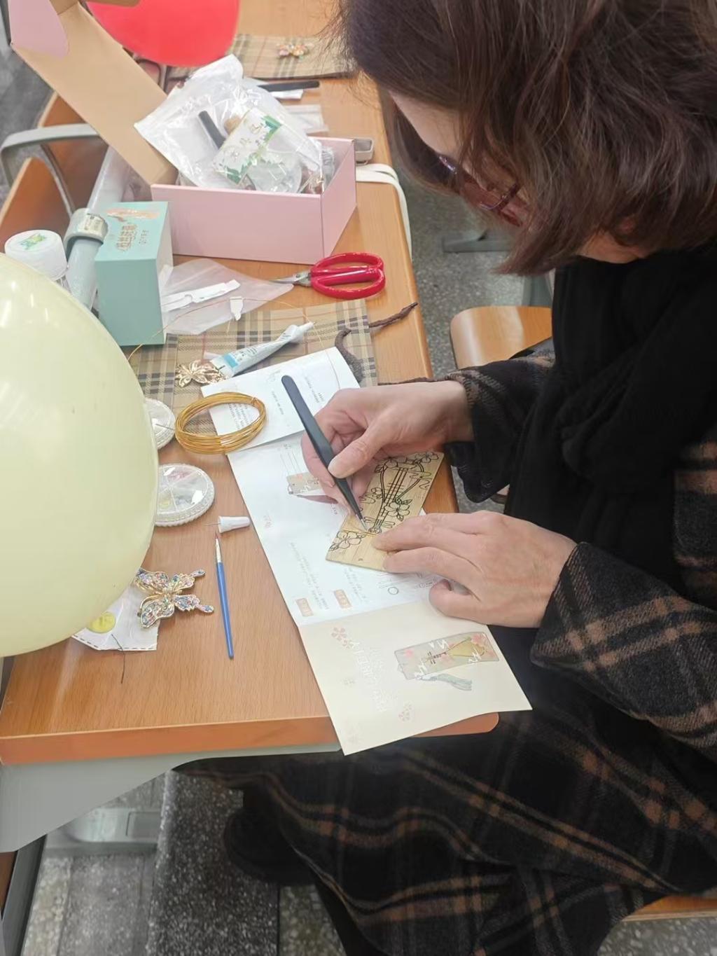 专业非遗老师详细讲解了掐丝珐琅和螺钿的历史渊源、制作工艺和艺术特色,每一个步骤都饱含古人智慧与匠心。在动手环节,女职工们充分发挥创造力,小心翼翼地掐丝、点蓝、填螺钿,填珐琅釉料。在大家的巧手下,一幅幅精美的掐丝珐琅作品、螺钿作品逐渐成型,展现了女教职工们对美的追求和对非遗文化的热爱。