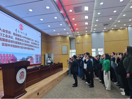 在新会员入会宣誓仪式上,仲新致辞,他对新会员的加入表示欢迎,并指出在工会大家庭里,我们要发扬集体主义精神,牢记工会服务职工的宗旨,以实际行动支持工会工作,维护职工合法权益,保障职工福利。号召大家要凝心聚力跟党走,踔厉奋发建新功,为加快学校高水平建设高质量发展贡献自己的力量!随后仲新带领全体新会员进行了庄严的入会宣誓,颁发了工会会员证。