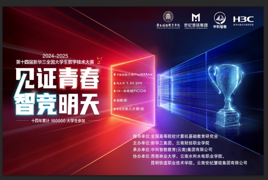 2025年3月15日,第十四届“新华三杯”云南省省赛在云南财经职业学院圆满落幕。本次赛事由全国高等院校计算机基础教育研究会指导,新华三集团与云南财经职业学院联合主办,云南世纪慧铭集团携手中科智教教育集团共同承办。