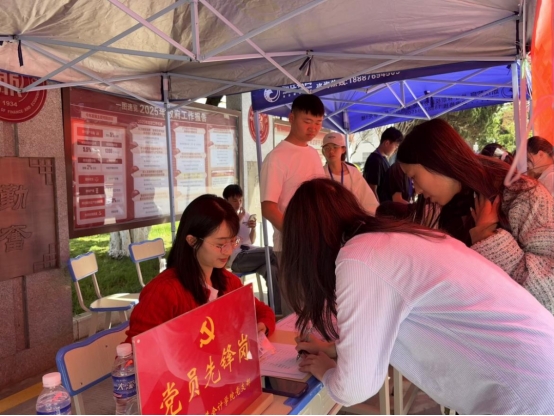 学院将主题党日活动与就业服务深度融合,组织师生党员成立“党员先锋服务队”,分设物资发放、政策咨询、秩序引导等岗位,为考生提供“一站式”贴心服务。教师党员耐心叮嘱考生备考注意事项、分发助考物资;学生党员主动引导错峰领取,现场还特别设置“就业政策咨询台”,发放云南省就业创业政策100问等资料,将高质量就业服务要求落到实处。