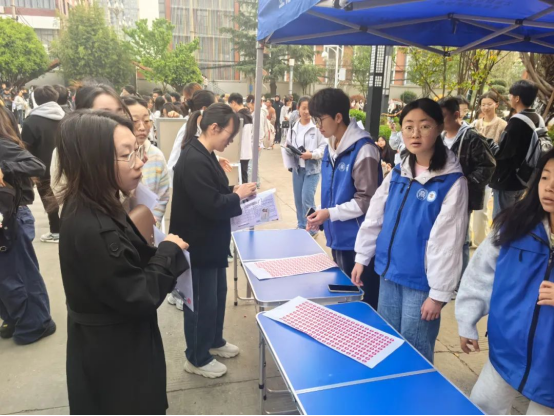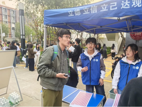 志愿者们搭建帐篷,为考生提供休息交流场所,在各时段引导考生入场、设置手机物品存放点、在学校各处提供方向指引,以专业的态度和热情的服务为考生助力。青年的成长离不开志愿服务,我们要持续践行“无志愿、不青春”的理念,为学校工作做出青春的贡献。