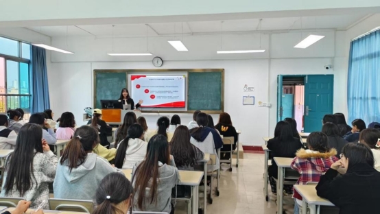 智慧会计学院团总支书记向同学们详细讲解了共青团如何在中国共产党的领导下团结广大青年,积极投身民族解放和国家建设中,并结合在井冈山的学习经历,分享了学习和工作中的感悟和体会。