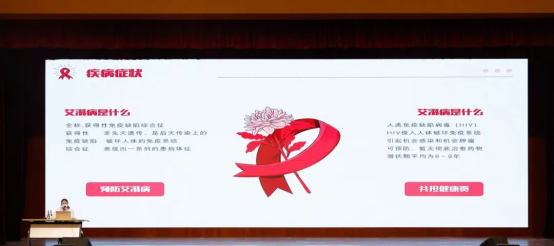 在防艾健康教育讲座上,五华区红云街道卫生服务中心周颖医生结合高校艾滋病感染低龄化趋势,讲解艾滋病症状、病理表现、常见传播渠道,引导学生正视疾病、消除偏见,倡导“早检测、早治疗、零歧视”的科学防治理念。