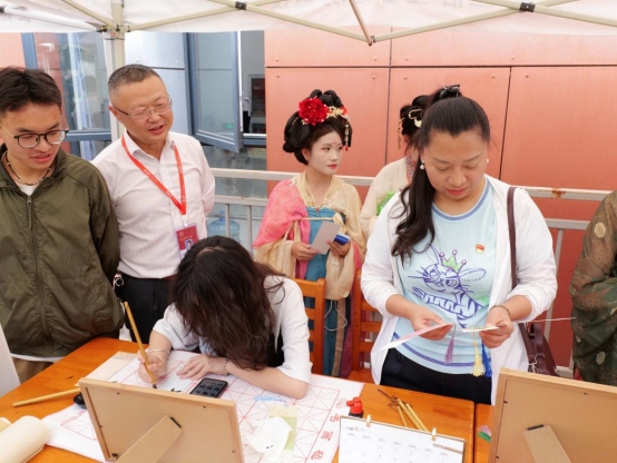副校长严黄一仪在启动仪式上深情寄语:“以书载道,方能文脉永续;以行践知,方能青春无悔。”云南民族大学图书馆杨志雄教授更以“读书是与文明对话”的哲思,呼吁青年学子在经典中沉淀生命的厚度。活动现场,古籍装帧作品展、汉服时装秀、水墨太极表演交相辉映,非遗文化与现代审美碰撞出璀璨火花。云南省图书馆专家亲授古籍装帧技艺,师生沉浸于“茶艺工坊”“古韵书签”等体验中,指尖流转的不仅是技艺,更是对传统文化的敬畏与热爱。