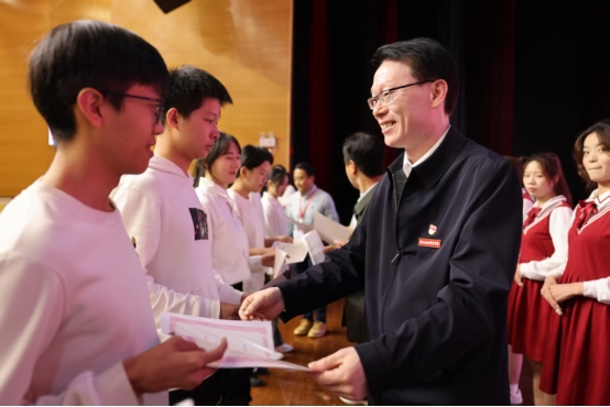 张金甫代表学校党委向获得表彰的优秀集体及个人表示热烈的祝贺,并向全校青年师生致以诚挚的问候和美好的祝愿。他充分肯定学校青年师生在过去一年取得的优异成绩,并对青年师生提出三点希望:一是坚定理想信念,做有志青年。要深学细悟党的创新理论,将个人理想融入民族复兴伟业,在学思践悟中筑牢信仰之基;二是练就过硬本领,做有识青年。要胸怀“国之大者”,锚定人生坐标,在知行合一中擦亮奋斗底色,使个人追求与国家发展同频共振;三是勇于担当作为,做有为青年。勇于担当时代赋予的重任,敢于在困难和挫折面前挺身而出,承担起新时代的时代使命,以知促行、以行求知,努力成为“下得去、靠得住、干得好、上得来”的财职好青年。
