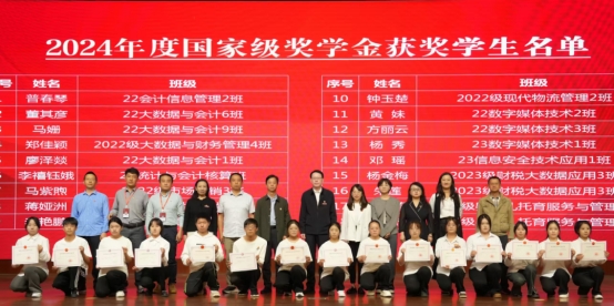 仲新宣读了《2024—2025学年云南省高校五好学生、优秀学生干部、先进班集体及优秀毕业生的表彰名单》《云南财经职业学院关于2023—2024学年国家级奖学金、国家励志奖学金、省政府奖学金等的表彰决定》,学生处负责人宣读了《云南财经职业学院关于表彰2024年度“优秀共青团员、团干部”“学雷锋志愿服务标兵”“五四红旗团支部”等的决定》,校领导、相关部门负责人为获奖同学进行颁奖。