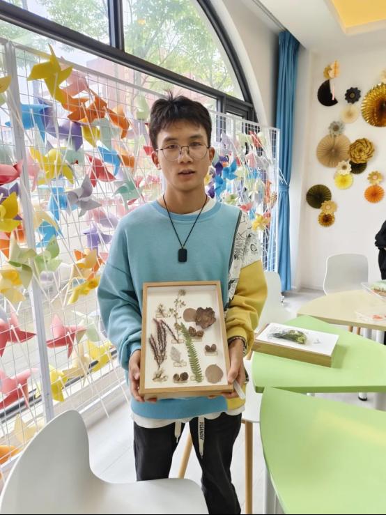 在随后的总结交流环节,师生围坐分享体验感悟。同学们纷纷表示,通过亲手构思、制作干花标本,不仅掌握了传统手工艺的制作技巧,更在选花、构图、定型的沉浸式创作中,完成了一次与自我情绪的深度对话。