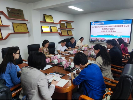 2025年6月25日,学校与长沙卫生职业学院、云南云投康养投资有限责任公司在知行楼4楼会议室进行校际校企交流座谈会。学校党委委员、纪委书记马加巍,数字康旅学院负责人,以及数字康旅学院专业带头人、银龄教师等人员参会。