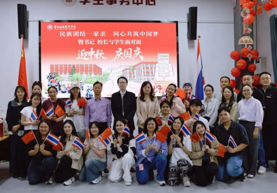 邹丽代表学校对泰国留学生的到来表示最诚挚的欢迎,亲切叮嘱同学们尽快融入新的学习生活环境,在校园里收获知识、收获友谊,承诺学校会助力他们适应新的学习生活,并向留学生们送上了节日祝福,让同学们在异国他乡也能感受到浓浓的节日暖意。