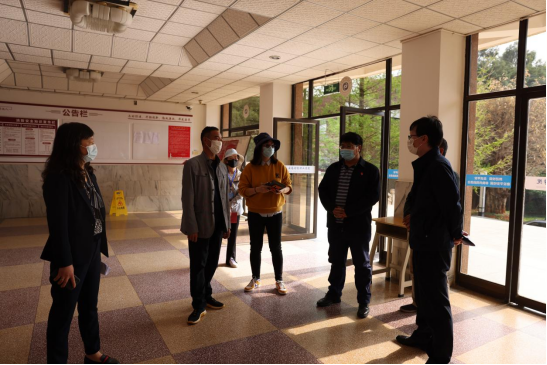 为落实校园疫情防控工作情况,督查学生安全、疫情防控、应急事件处置落实情况,2022年3月25日,云南省教育厅督查组来校督查疫情防控工作,现场督导疫情防控工作。督查组对校区的校门管控、师生员工健康状况管控、学校防疫生活物资储备、学生食堂、防控隔离室和医务室等情况进行了重点督查。学校党委书记张金甫同志,党委副书记、校长邹丽同志和相关部办处负责同志陪同督查。