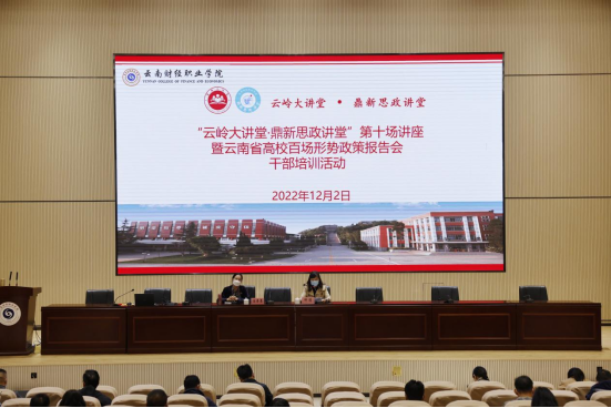此次讲座也是学校学习党的二十大精神专题报告会、云南省高校百场形势政策报告会和干部培训活动。学校中层以上领导干部、全体党员、思政课教师、入党积极分子、发展对象、“青马工程班”学员、“鼎新思政讲堂·理论骑兵”理论宣讲团成员参加学习。