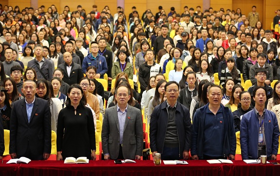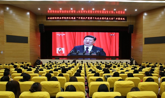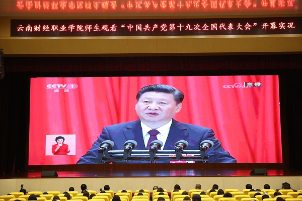 2017年10月18日上午9:00时,中国共产党第十九次全国代表大会在北京人民大会堂召开。按照省委《关于认真组织收看党的十九大开幕实况的通知》及厅直属机关党委组织收看活动的具体安排,我校党委组织师生在大礼堂收看了党的十九大开幕式实况。学院领导、中层干部、基层党组织支委、各系辅导员、无课党员、教师和部分学生代表共计700余人一起聆听了习近平总书记所作的题为《 不忘初心、牢记使命,高举中国特色社会主义伟大旗帜,决胜全面建成小康社会,夺取新时代中国特色社会主义伟大胜利,为实现中华民族伟大复兴的中国梦不懈奋斗》的报告。