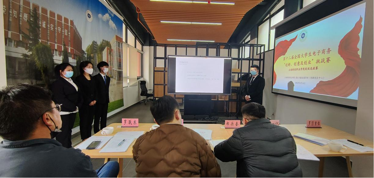 2022年4月19日,第十二届全国大学生电子商务“创新、创意及创业”挑战赛云南财经职业学院校级选拔赛在学校生涯咨询室举行,学校副校长严黄一仪出席本次比赛。此次比赛特别邀请了云南省青年创业协会副秘书长郑兴奎先生,云南大学滇池学院创新创业学院副院长仇健老师,云南工商学院罗跃东老师作为评委老师。