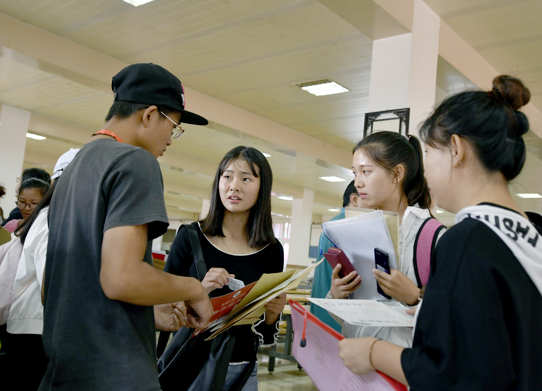 前来报到的新生仔细询问入学时的注意事项,对即将展开的大学生活充满了好奇。在迎新现场,为帮助家庭经济困难的学生顺利入学,学院采取了设立“绿色通道”等多项举措,学生资助工作人员进行现场政策解答和热情服务,为经济困难的新生提供暖心周到的服务。