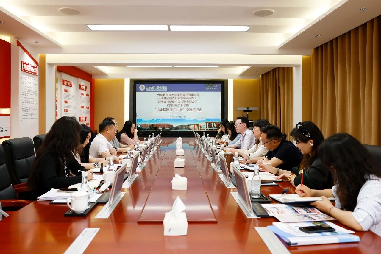 2025年4月23日,云南省健康产业发展集团有限公司、云南甘美康养产业集团有限公司党委书记、董事长黄波一行到学校交流座谈。学校党委书记张金甫,党委副书记、校长邹丽出席交流活动。