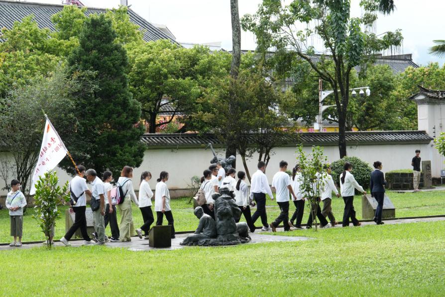 上午,实践团赴国殇墓园,守护国家与人民的烈士忠魂在此长眠。中国远征军烈士名录墙上,10万多名参与滇西抗战的中国远征军将士及地方参战人员的姓名静静镌刻。实践团成员庄严肃立,向收复滇西失地的烈士默哀鞠躬,献上菊花,致以崇高敬意。