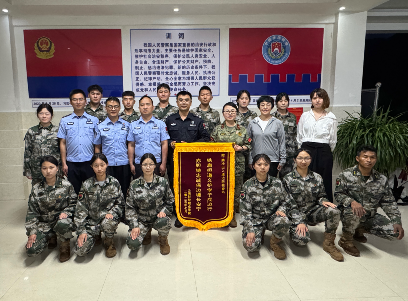 学校代表向腾冲出入境边境检查站赠送锦旗,以此感谢一代代戍边人始终如一的坚守与付出。从崎岖山路到平整台阶,从昔日的“刀耕火种”到如今的“旅游经济”,从曾受走私贩毒困扰到积极融入“一带一路”发展浪潮,腾冲边境的和平稳定与繁荣发展,无不凝聚着他们的青春、热血与忠诚。正是这份“守一方国门,护一方平安”的责任担当,让他们在祖国最前沿筑起了一道坚不可摧的屏障,为边疆发展保驾护航。