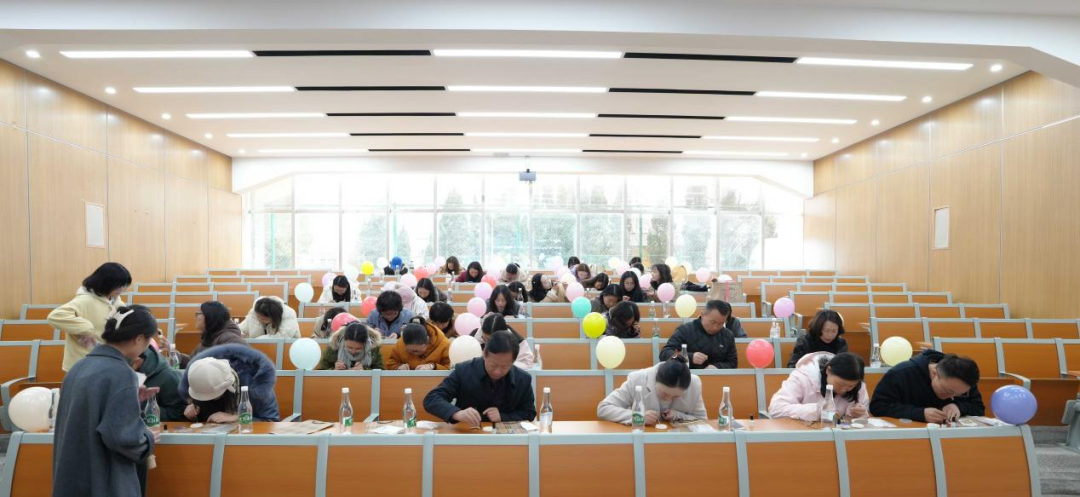 3月8日下午,学校阶梯教室热闹非凡,参加“非遗进校园——掐丝珐琅、螺钿创作”体验活动的女教职工们围坐一堂。学校党委副书记、工会主席仲新与全体女职工欢聚一堂。他充分肯定了女职工对学校发展的贡献,向她们表达节日的祝福,共度美好节日。