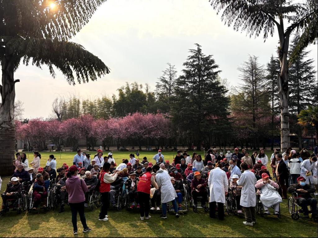 同学们还配合养老院和社区工作人员在公园内开展了老人们的互动活动,欢声笑语回荡在西华园的每一个角落,让这春日的赏花之旅充满了温馨与感动。