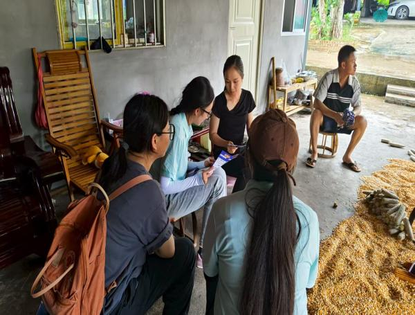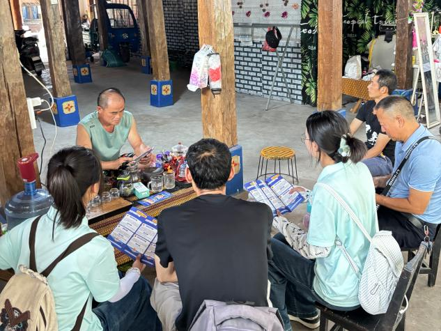 下午,团队转赴勐腊县磨憨镇尚冈村。在政府工作人员和村干事的引导下,20名师生分成5个小组,穿梭在错落有致的新式吊脚楼间,开展入户金融反诈宣传及普通话推广。