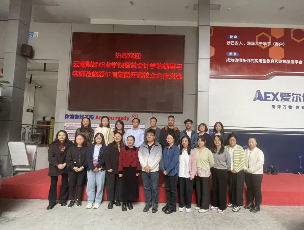 为深化产教融合,提升教师实践教学能力,推动“双师型”基地建设,2025年9月26日15:00,云南财经职业学院智慧会计学院院领导、教研室主任、专业带头人一行8人,赴学院“双师培养培训基地”云南爱尔信教育科技有限公司走访企业,对双方师资进行培训,并围绕校企合作进行交流。
