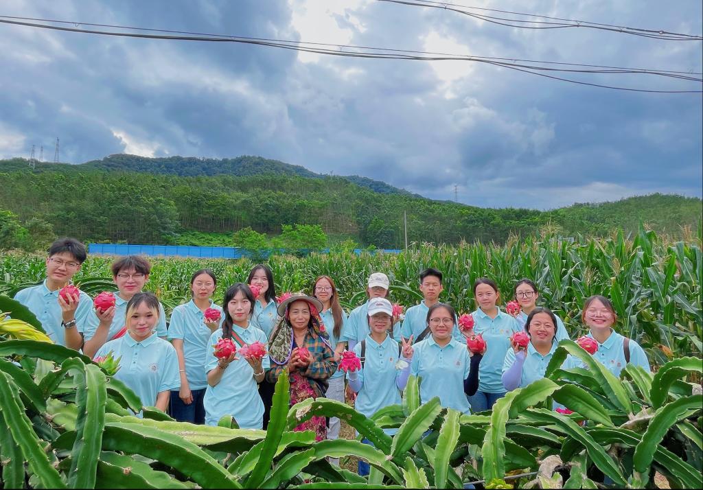 下午,团队来到龙林老寨火龙果种植基地,深入田间地头,了解火龙果种植技术,并参与采摘劳动。