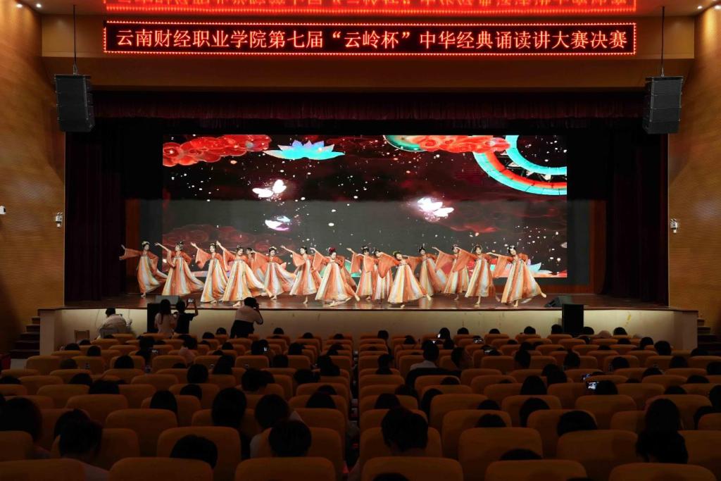 2025年5月15日,由校语言文字工作委员会和数字康旅学院联合举办的云南财经职业学院第七届“云岭杯”中华经典诵写讲大赛决赛举行。经过前期对300余组作品的初赛和复赛,42组作品进入决赛。学校党委副书记仲新,校团委、各二级学院党支部书记到现场指导,近500名学生现场观赛。