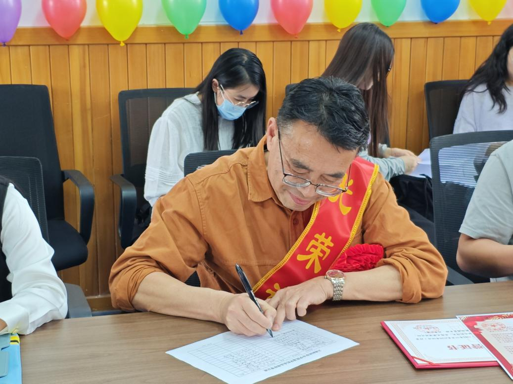 各位同事纷纷对董俊老师送上祝福,分享与董老师共事的难忘时光,言语中满是不舍与祝福。数字商学院团总支和学生会代表,也隆重的向董老师送上了荣休祝福。