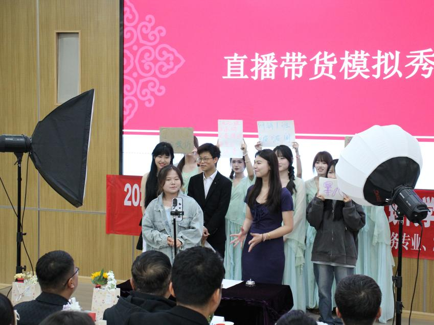 活动在网络营销与直播电商专业的学生们的一场直播带货模拟秀中开启。同学们对产品讲解精准到位,与“观众”的互动自然流畅,充分展现了电商专业学生扎实的专业素养。古典舞蹈《牵丝戏》展现了同学们的综合素质。