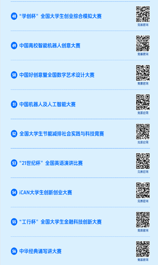 2023全国普通高校大学生竞赛分析报告》同步在中国高等教育学会官网(https://www.cahe.edu.cn)中,共计竞赛目录84项,名单如下。