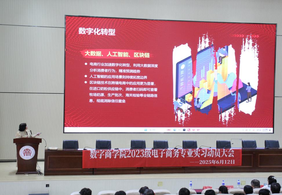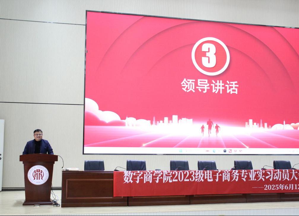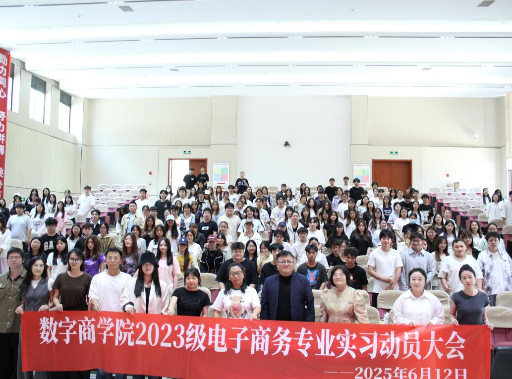 2025年6月12日,云南财经职业学院数字商学院铭德楼报告厅内气氛热烈,2023级电子商务专业实习动员大会在此举行。学院领导、讲师及2023级电子商务专业全体同学齐聚一堂,共同为即将开启的实习之旅蓄力赋能。