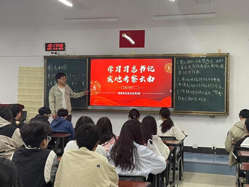 2025年3月19-20日,习近平总书记赴云南考察,围绕产业升级、开放、民生等作出重要指示,为云南发展指明方向。为贯彻讲话精神,引导青年担当使命,云南财经职业学院信息工程学院团总支在各班开展“习近平总书记考察云南”专题学习研讨会