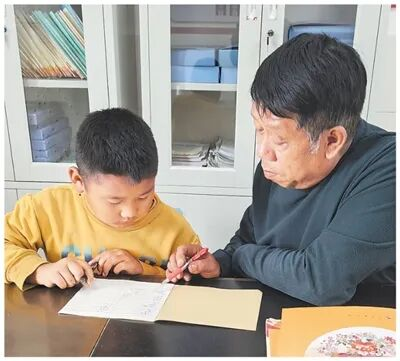 银龄教师李志华(右)在辅导学生。周兴永摄(人民视觉)