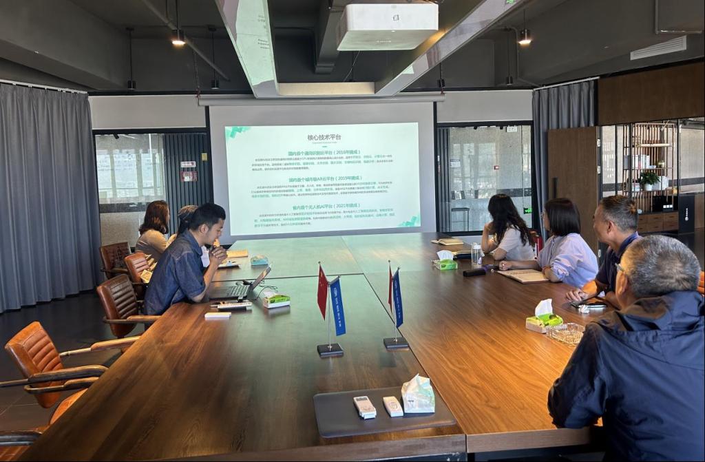 会后,企业展示了无人车、低空无人机、AR云等技术产品,我校与企业技术专家进行现场交流,进一步探讨了专家进校开展智慧旅游技术讲座以及校园安防智能化管理等内容。