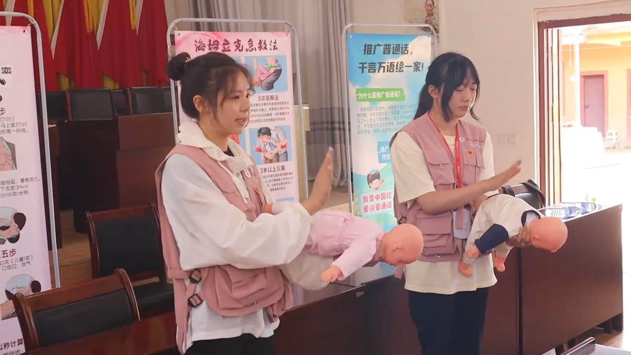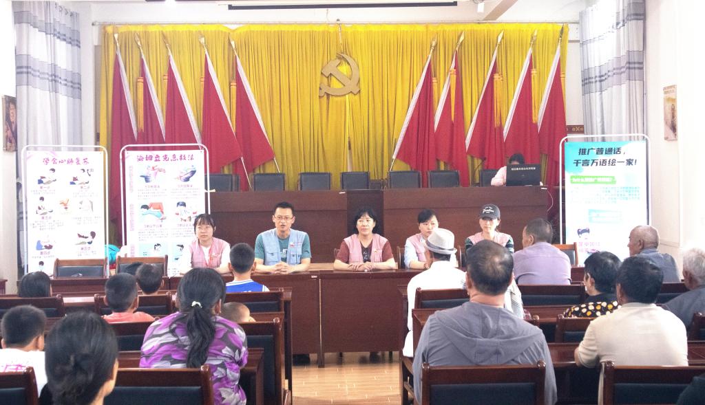 在实践活动中,同学们充分发挥自身专业特长,开展了形式多样的互动体验。他们通过生动讲解和实操演练海姆立克急救法和心肺复苏急救技能,提升了村民们的应急自救能力;精心编排并表演了民族舞蹈节目,展现了各民族文化的独特魅力,增进了村民对多元文化的了解和认同。同时,团队深入调研了洼垤社区通用语言文字的使用情况以及少数民族语言文化保护现状,通过宣讲普通话政策,向村干部和村民们阐述普通话在促进乡村文化交流、推动乡村经济发展、提升乡村治理水平等方面的重要作用,鼓励大家积极学习和使用普通话,为乡村文化融合与发展贡献力量。