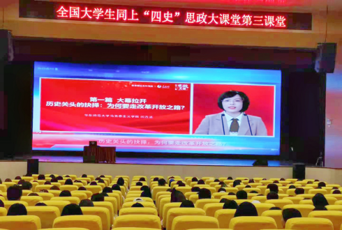 为深入贯彻落实习近平总书记关于深化思想政治理论课改革创新和“大思政课”的重要指示批示精神,全面落实习近平总书记在党史学习教育动员大会上的重要讲话精神,积极宣扬改革开放史及其重要思想内涵,5月15日,我校师生通过集中收看全国大学生“同上'四史'思政大课”第三讲,深入学习改革开放史,领悟时代精神与时代使命,续写更多“春天的故事”。